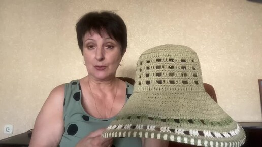 Прячемся от солнца в Шляпах из рафии. Ввязываем регилин в поля шляпы.
