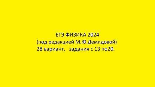 Еге физика 2024 (под реакцией М. Ю. Демидовой), 28 вариант, задания с 13 по 20.