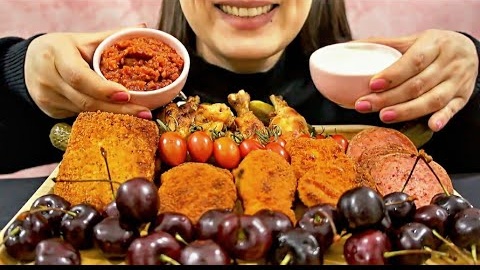ASMR Fish Nuggets | Fried Chicken | Spicy Souce | Fruit #youtube #youtuber #asmr #mukbang #youtubers