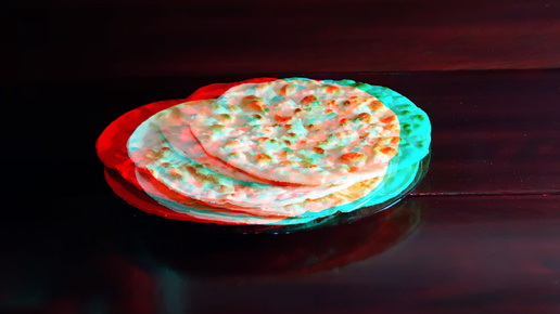 3D stereo red-cyan Сырно-луковый лаваш на сковороде или как приготовить лаваш