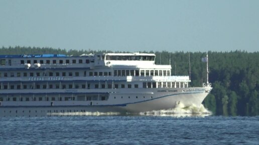 Теплоход "Леонид Красин" летит по просторам р.Волга. Вечный торопыга