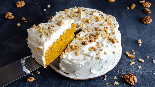Морковный пирог с орехами и кремом