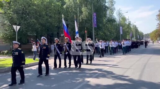 В Обнинске отмечают День Военно-Морского Флота. По традиции, личный состава Учебного центра ВМФ России маршем прошел по городу
