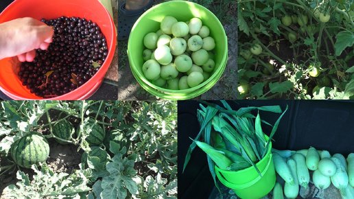 Огород сестры показываю: кукуруза, кабачки, арбузы, дыни... Забрали мамочку к себе