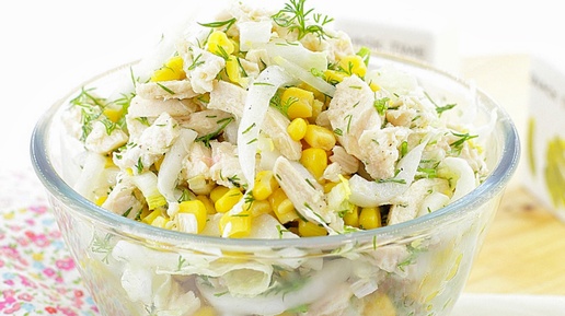 🥗 Салат из пекинской капусты, курицы и кукурузы — рецепт вкусного ужина