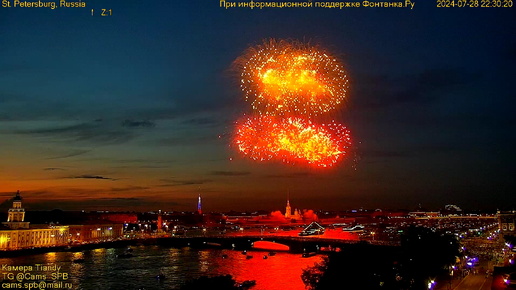 Салют на День ВМФ в Санкт-Петербурге 28 июля 2024. Фейерверк с Петропавловской крепости
