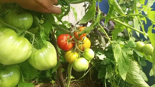 Созрели первые помидорки и в теплице, и в грунте. Обрезаю листву томатов почти под ноль