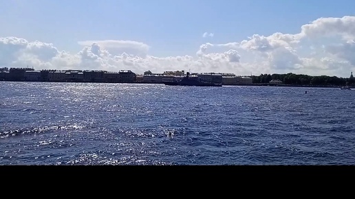 Проход военного корабля на параде в честь Дня ВМФ в Санкт-Петербурге 28.07.2024. Вид с Петровской набережной.