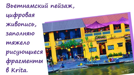 Вьетнамский пейзаж, заполняю трудно рисующиеся фрагменты в Krita.