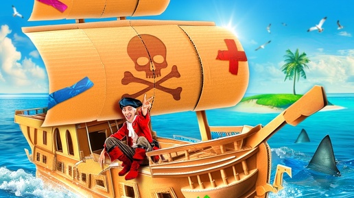 Я Построил ГИГАНТСКУЮ ПИРАТСКУЮ КАРТОННУЮ ЛОДКУ ! *Стали ПИРАТАМИ*