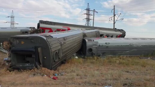 Еще кадры с места схода вагонов поезда Казань — Адлер