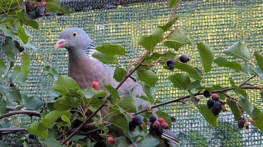 02.08.24.Дача.Шурик напугал..Лесной голубь Вяхирь не боится людей.Обрезка клубники продолжается.