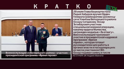 Военнослужащий из Белорецкого района - участник президентской программы «Время героев»