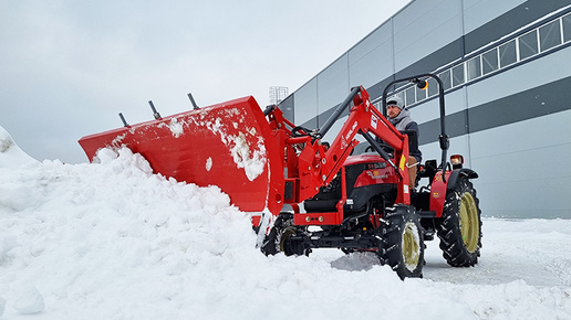 Трактор Solis-GOLD 26 Xtra с погрузчиком и отвалом Kerland в работе