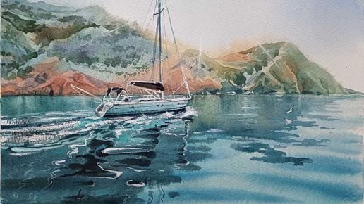 Далее: Рисуем велосипед на песке у моря акварелью | Ускоренное видео