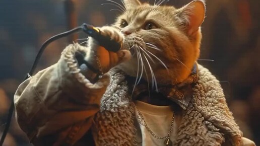 Котик в пальто поет на концерте