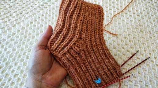 Весь носок английской резинкой, интересный и новый способ вязания носочка.