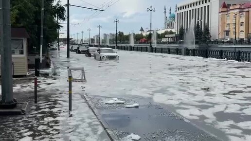 Ледяная катастрофа в Казани. В городе прошел сильный ливень с градом, по улицам теперь плавают ледовые глыбы