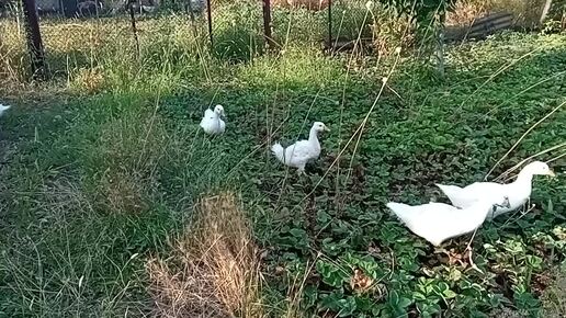 Гуси забрались на мамин огород, а там клубника порадовала вторым урожаем
