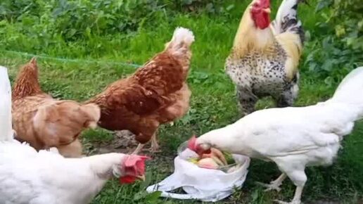 Вечер на огороде, принесла птицам арбузные корки, гуляют самостоятельно вне своей территории (выпустили их пощипать травы).