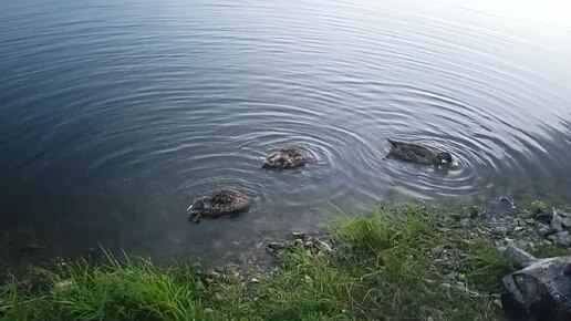 Прекрасный закат. Чистая вода и уточки у берега озера...
