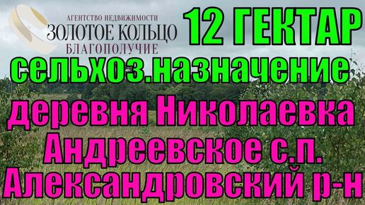 Участок 12 Га для сельскохоз. назначения в д.Николаевка (Андреевское с.п.), Александровский район