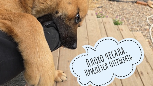 Пёс Кубик требует чесания и внимания. А то чего просто так сидишь без дела? Руку откушу!