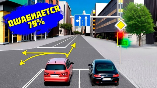 Куда разрешено продолжить движение красному автомобилю на перекрестке?