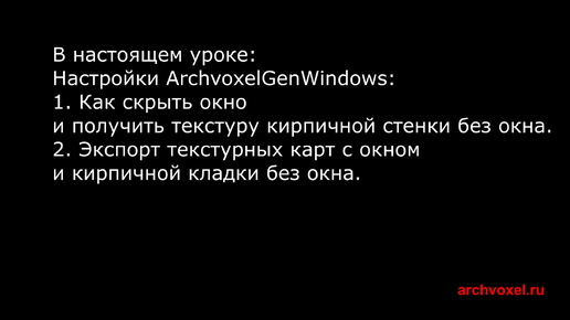 Уроки Archvoxel.ru ArchvoxelGenWindows в Substance Player: Текстурные карты кирпичной кладки без окна и с окном и их экспорт.