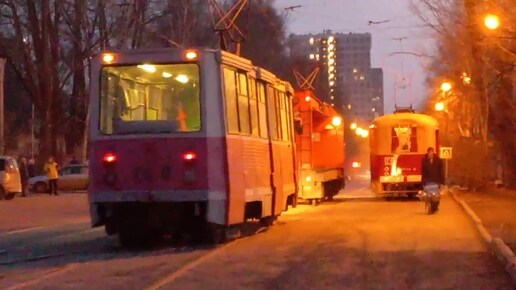 Трамваи РВЗ-6М2, ТК-28, СВ-4 (71-605А) выходят из депо
