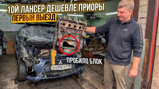 Три раза перевернулся и остановился об столб.Lancer x мы заставили его ехать!!!