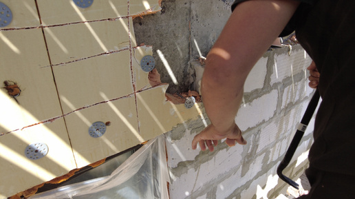 Как подготовить газобетонный дом к фасадным работам. Удаляем вкладыши из ЭППС, элементы примыкания, провеска фасадов шнурками, старт