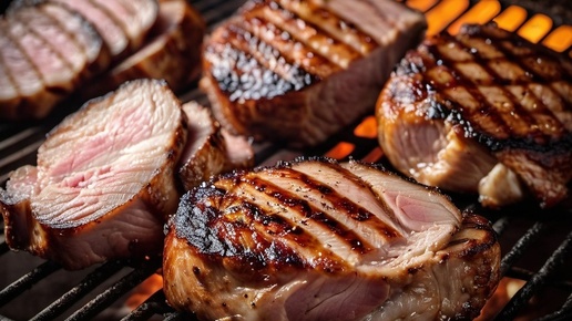 Жарим свинину в селе на углях. Серб жарит барбекю.