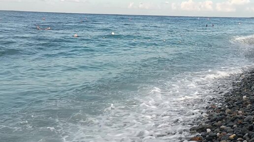 Пляж Bridge Resort в Имеретинке, 31.07.2024, утро. Сильные волны, но купание не запретили. Волна-труба.
