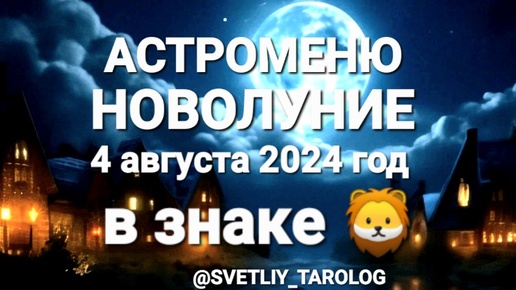 🦁 АСТРОМЕНЮ.НОВОЛУНИЕ 4 августа 2024 года в знаке зодиака ЛЕВ ♌️. К чему готовиться? 🔮