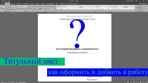 Как сделать титульный лист для индивидуального проекта, проектной работы, реферата, курсовой