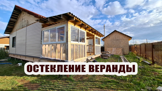 Остекление веранды. Новая стоянка для машины. Обрешетка стен гаража и подготовка к установке окна