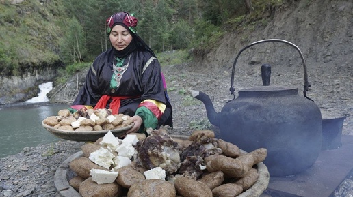 ДАГЕСТАН. Жительница аула Тинди готовит традиционную еду - ХИНКАЛ. Россия Деревенская жизнь
