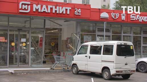Микроавтобус сбил пенсионерку и въехал в витрину магазина