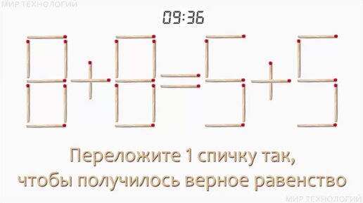 Задача 156. Переложите 1 спичку так, чтобы получилось верное равенство (8+8=5+5)