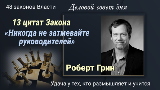 Удача у тех, кто размышляет и учится. «Никогда не затмевайте руководителей» 13 цитат Закона. Деловой совет дня.