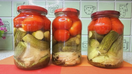 Ассорти помидоров и огурцов на зиму. Заготовки на зиму без стерилизации
