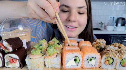 МУКБАНГ мне сложно, первое видео за месяц, роллы с лососем и сладости Тануки. Почти обзор mukbang