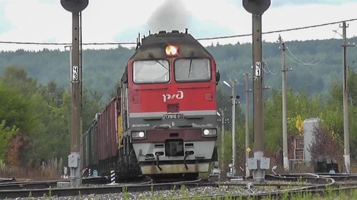 Тепловозы 2ТЭ116УД-017 и ЧМЭ3-1563 с вывозным грузовым прибывают в Кольчугино.