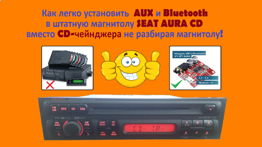 Как легко установить AUX и Bluetooth в штатную магнитолу SEAT AURA CD вместо CD-чейнджера не разбирая магнитолу!
