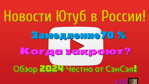Новости! Ютуб в России! Замедление 70 %! Обход! Когда закроют? Обзор 2024 Честно от СэнСэя!