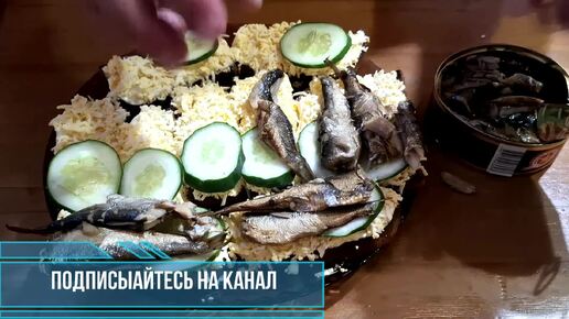 Беру Хлеб, Яйцо, Шпроты, Огурец и готовлю чудо закуску. Уходит со стола за минуты.