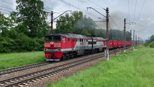 Отправление 2ТЭ116-647 с грузовым поездом. Сиверская