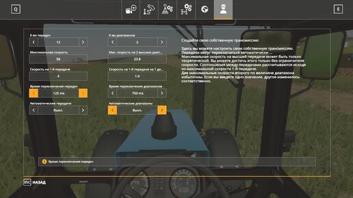 Farming Simulator 2019.Редактирую Параметр время переключения передач
