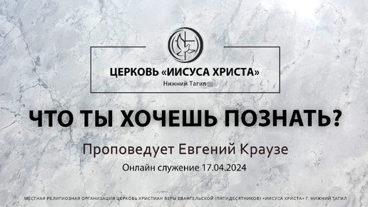 "ЧТО ТЫ ХОЧЕШЬ ПОЗНАТЬ?" Проповедует Евгений Краузе | Онлайн служение 17.04.2024 |